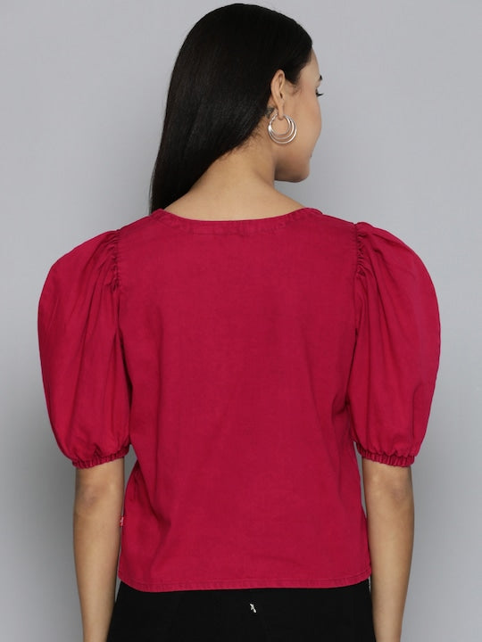 This red solid top from Levi's is endlessly versatile and easy to wear, making it the perfect casual staple. With a regular fit, this cotton top looks great either way, layered or not. Show off your styling skills as you mix and match this top with relaxed jeans, denim skirts, or cut-out shorts. 1. Features puff sleeves 2. Round neck is easy to layer and style'Live in Levi's'asserts with confidence and pride that Levi's clothes are indeed for everybody who's not just anybody.
