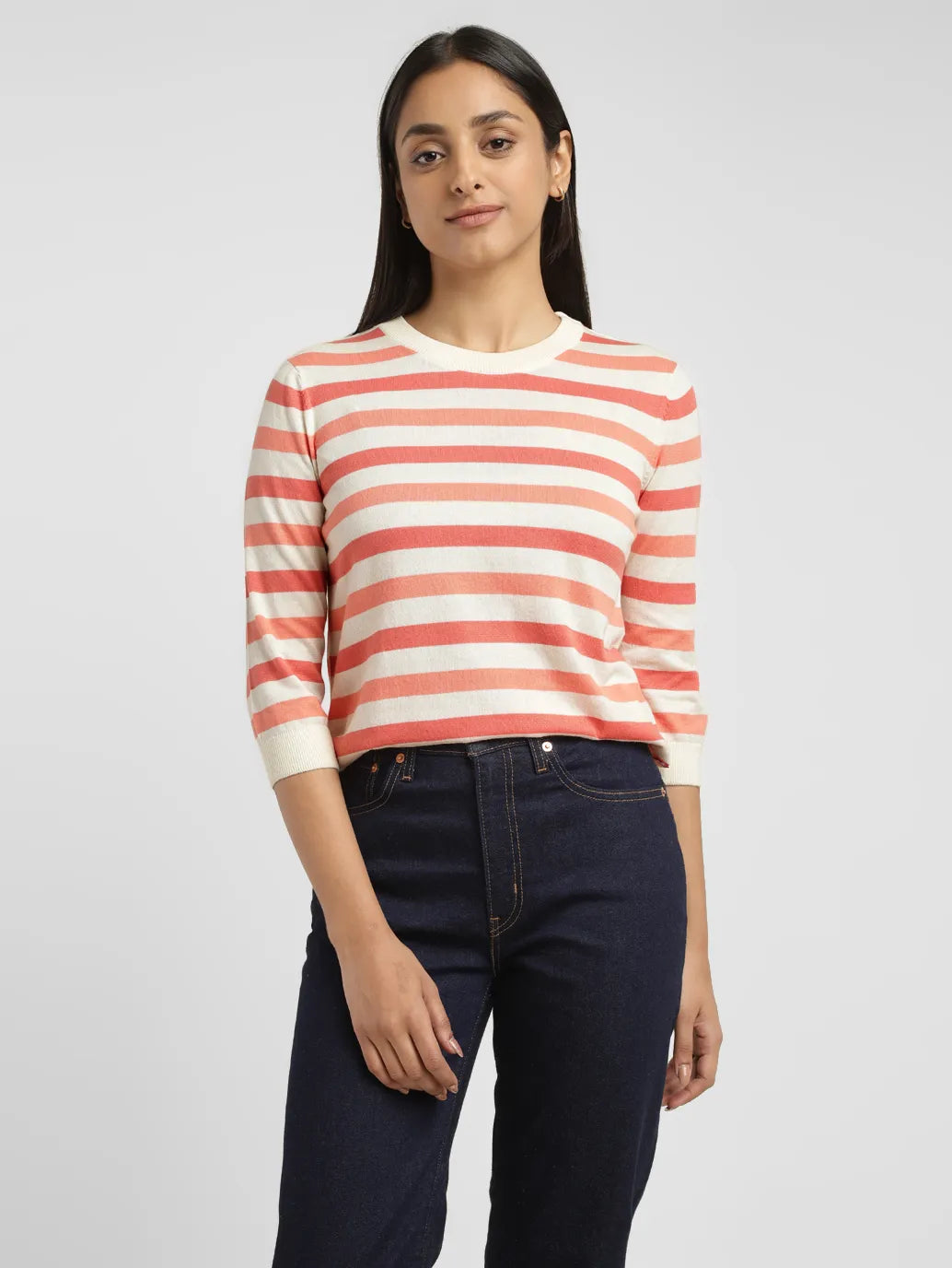 - Features a crew neck and 3/4th sleeves