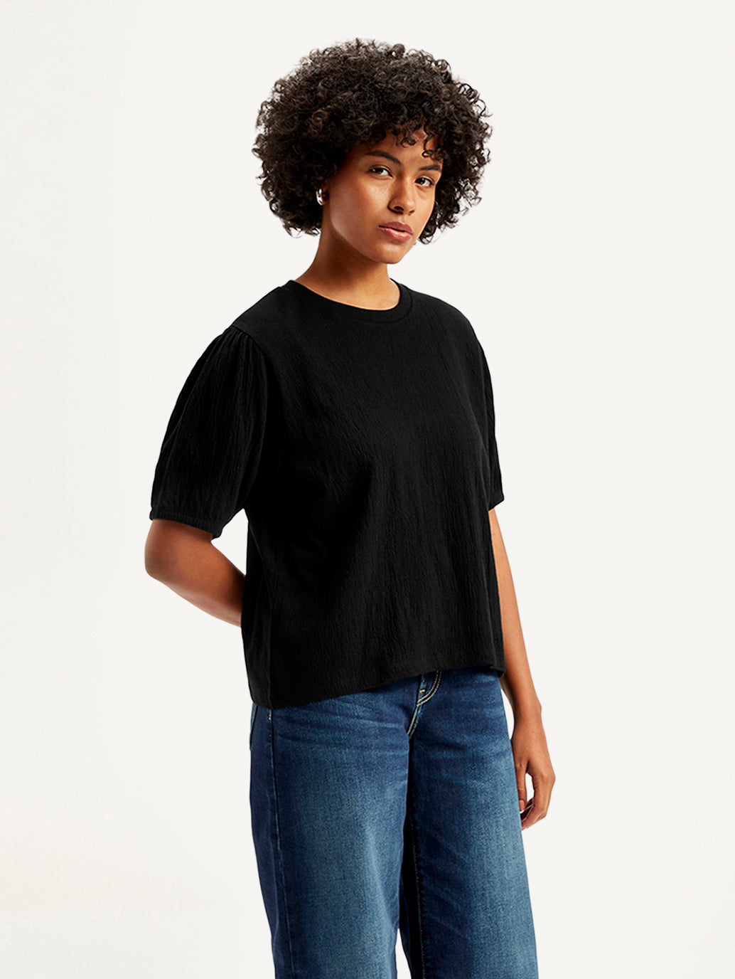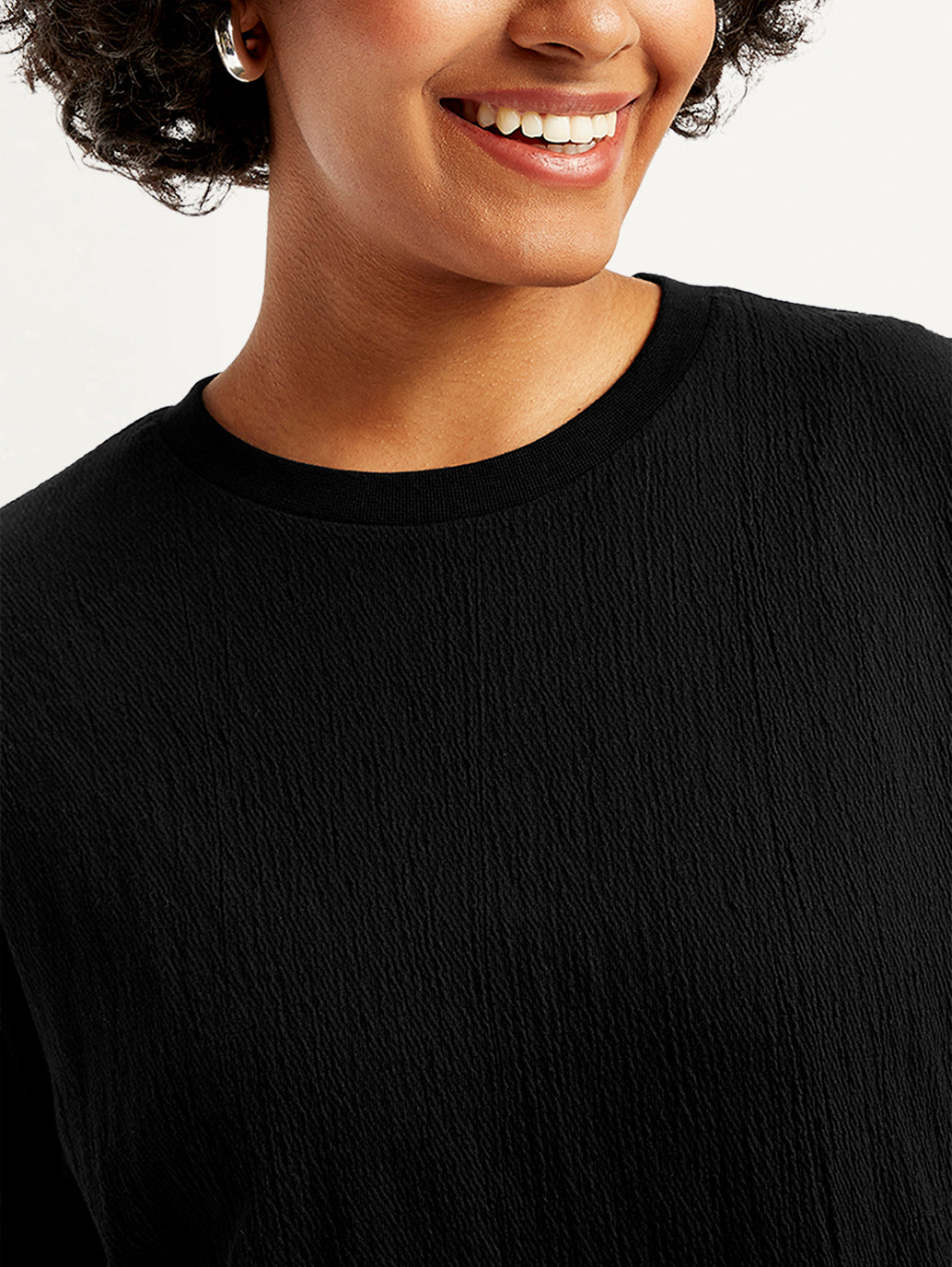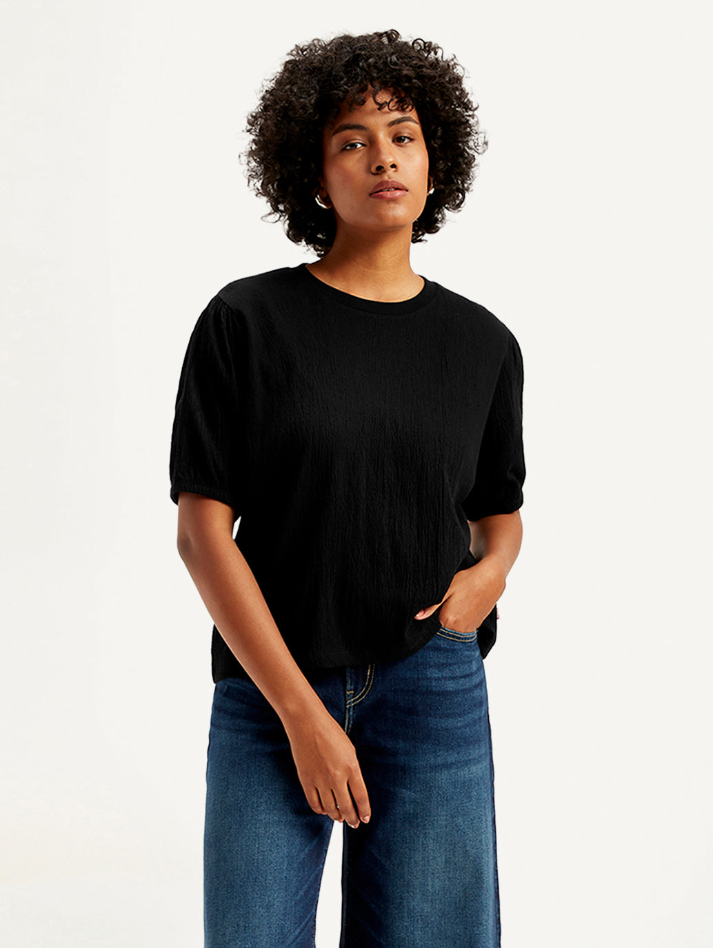 Make a statement with this stylish black striped pattern top from Levi's. Designed for a straight fit, it features a crew neck and half sleeves. Made from good quality cotton fabric, this top is perfect for all your casual outings.