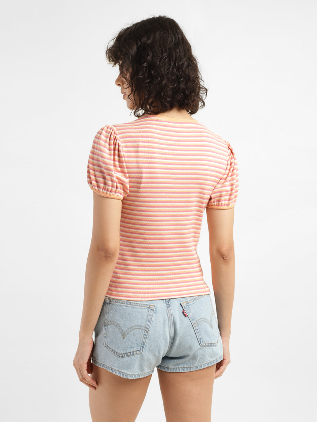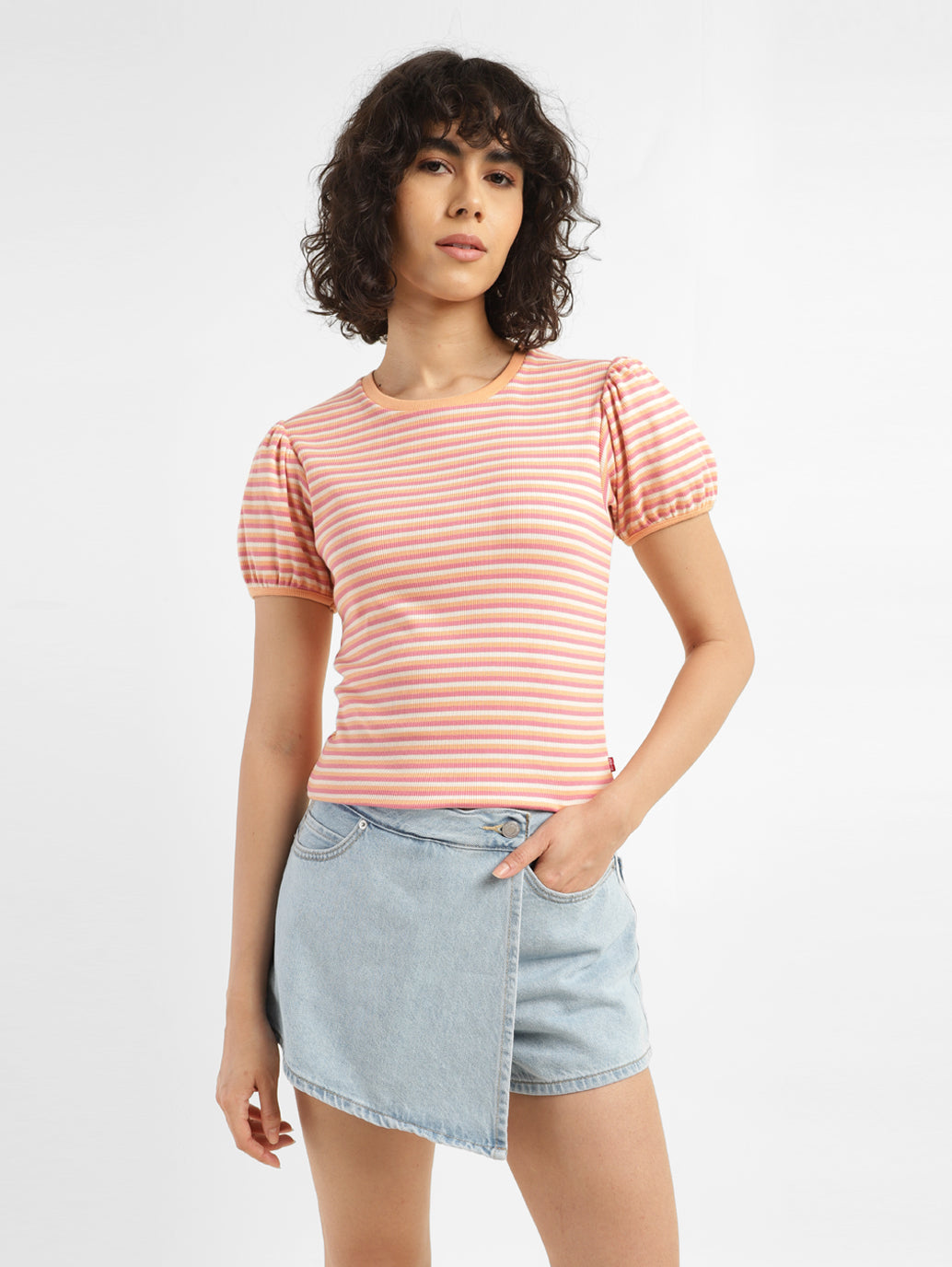 Every woman's wardrobe needs a dependable T-shirt, and this peach t-shirt delivers! With a round neck and puff sleeves, this Levi's t-shirt exudes charm. Effortlessly cool, it's guaranteed to elevate your casual wardrobe like no other.