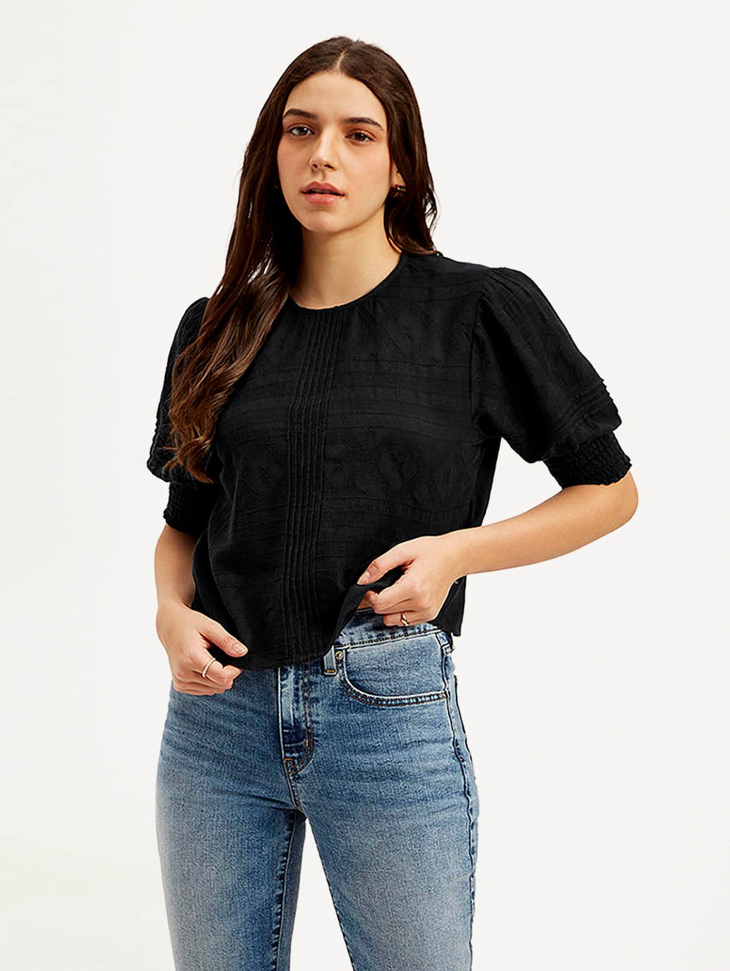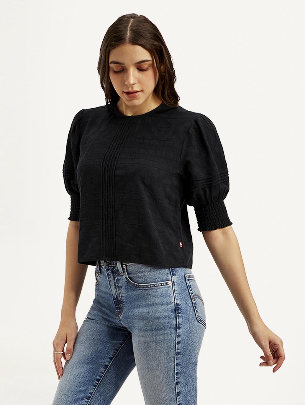 When there is something worth celebrating, lift your spirits with this textured top by Levi's. If you love easy-to-wear pieces that make a statement, be sure to add this black top into your casual wardrobe! With elbow sleeves and a round neck, this top will fetch you compliments for your sense of style.