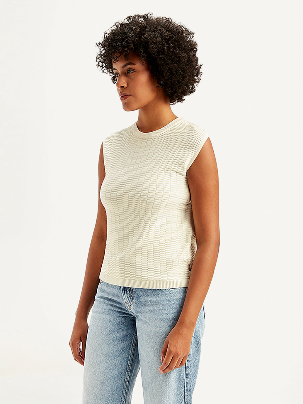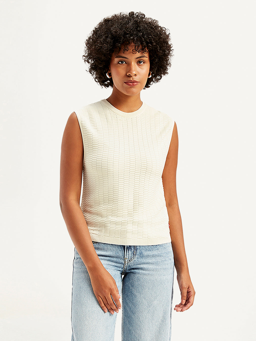 Looking your best is no longer an ordeal. Levi's has a wardrobe solution for all your casual wear needs with this white top. For effortless style, throw on this lyocell, viscose top cut in a regular fit for a flattering shape. The textured pattern and sleeveless style give this top a stand-out finish.